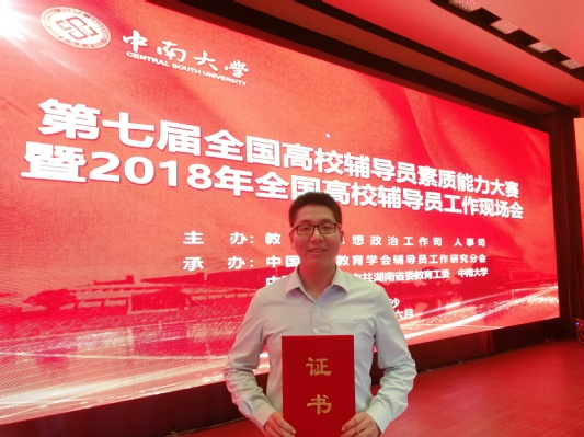 6月23-24日,第七届全国高校辅导员素质能力大赛决赛在中南大学举行,来自全国各高校的78位辅导员参加了比赛。经过激烈角逐,马克思主义学院辅导员金程远凭借扎实的理论功底、过硬的专业素养,表现出色,荣获本次赛事一等奖。这是J9·九游会「中国」官方网站辅导员继2016年之后再次摘此奖项,J9·九游会「中国」官方网站也成为全国高校中2次荣获该项赛事一等奖的4所高校之一。