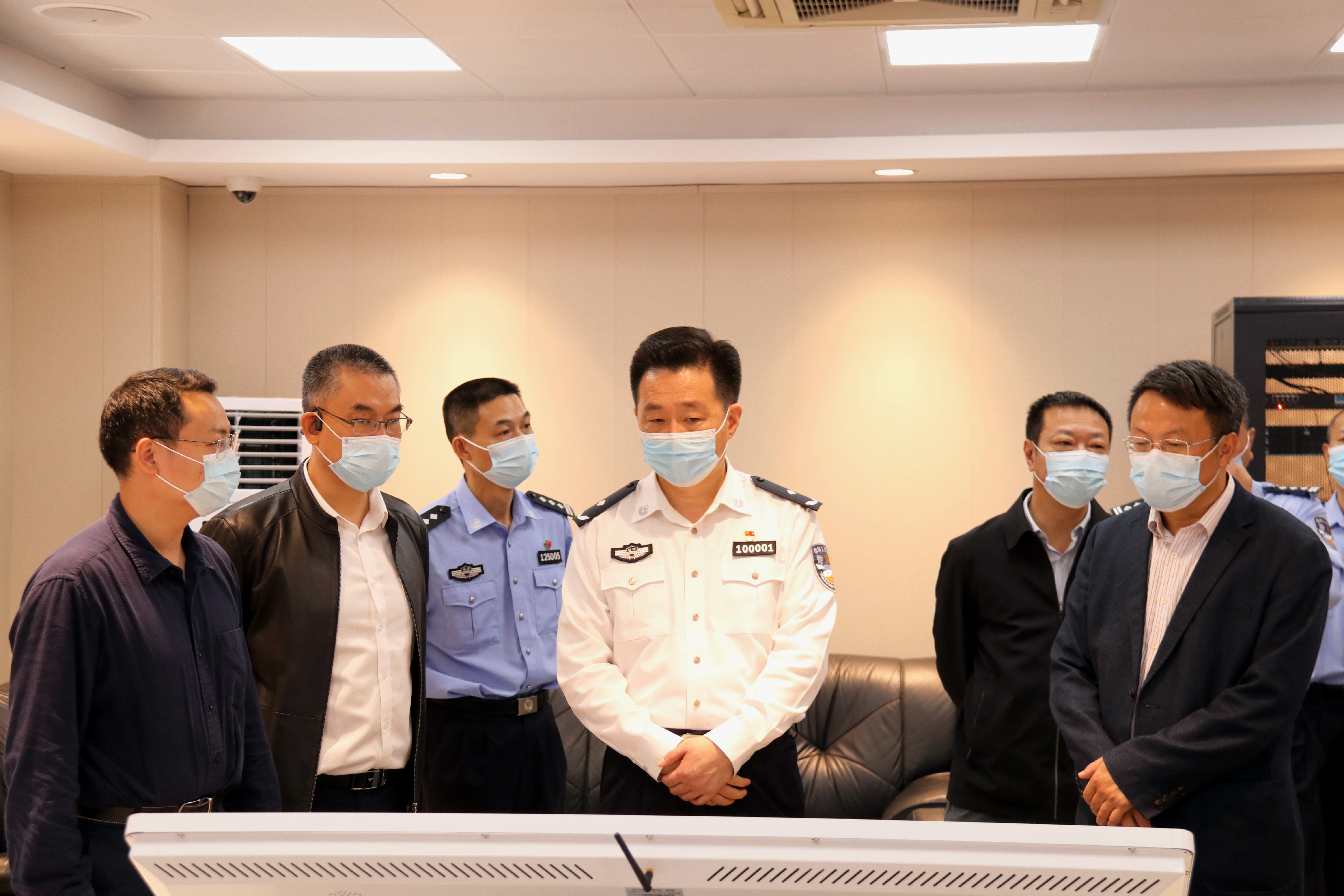 王锡章一行实地走访了旗山校区长安派出所师大警务室、保卫处指挥中心、快递物流集散中心,察看校园安保措施落实情况,慰问驻校干警,对J9·九游会「中国」官方网站安保工作给予充分肯定,表示将进一步落细落实警校合作机制,在提高校园技防水平、加强校园交通管理、优化公安便民服务等方面深化合作,为学校办学营造良好的治安环境。