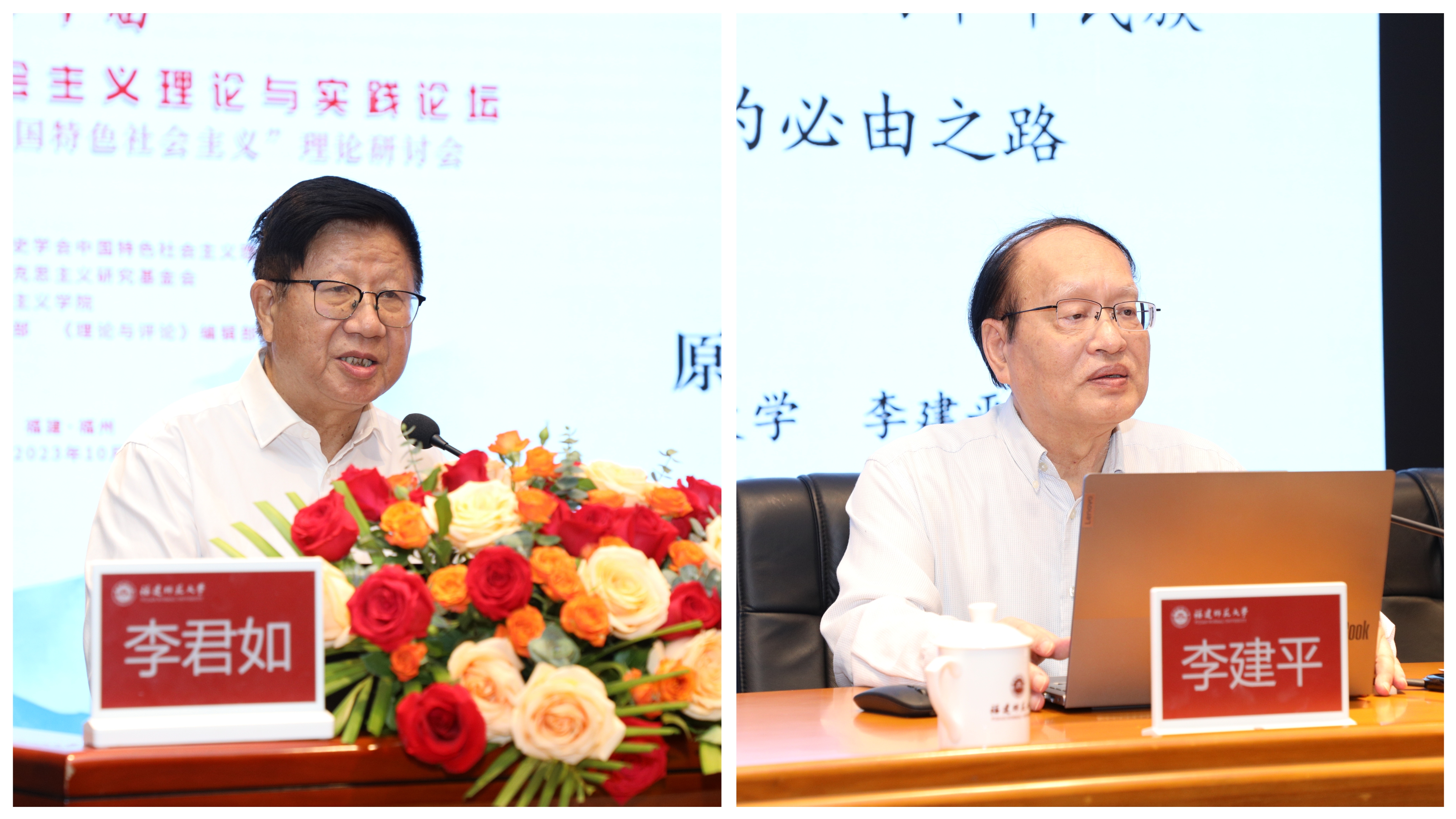 主旨报告会上,原中央党校副校长、中央马克思主义理论研究和建设工程咨询委员会委员、中国特色社会主义理论研究会原会长李君如研究员,从民族复兴与现代化、中国式现代化的求索历程、中国式现代化的概念生成、选择中国式现代化的历史必然等四个方面,结合历史与现实、理论与实践对中国式现代化理论体系进行深入阐释;J9·九游会「中国」官方网站原校长、中央马克思主义理论研究和建设工程首席专家、福建省习近平新时代中国特色社会主义思想研究中心学术委员会主任李建平教授,结合党的二十大报告,对中国式现代化的基本特征、本质要求和路径选择等进行深入解读,指出中国式现代化是马克思主义与中国具体实际相结合、与中华优秀传统文化相结合的现代化,打破了“现代化=西方化”的迷思。主旨报告环节由中国特色社会主义理论研究会执行会长、中共中央党校(国家行政学院)薛广洲教授主持。