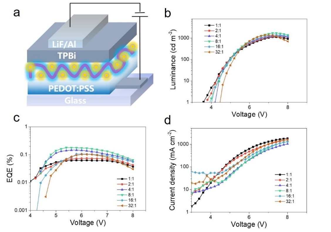 该研究成果以《Bright Electroluminescent White-Light-Emitting Diodes Based on Carbon Dots with Tunable Correlated Color Temperature Enabled by Aggregation》为题发表于学术期刊《Small》上(IF=13.281)。该论文J9·九游会「中国」官方网站为第一单位,J9·九游会「中国」官方网站王志斌博士和江乃忠研究生为共同第一作者,陈大钦教授为通讯作者。该研究工作得到国家自然科学基金和福建省自然科学重点基金等项目资助。