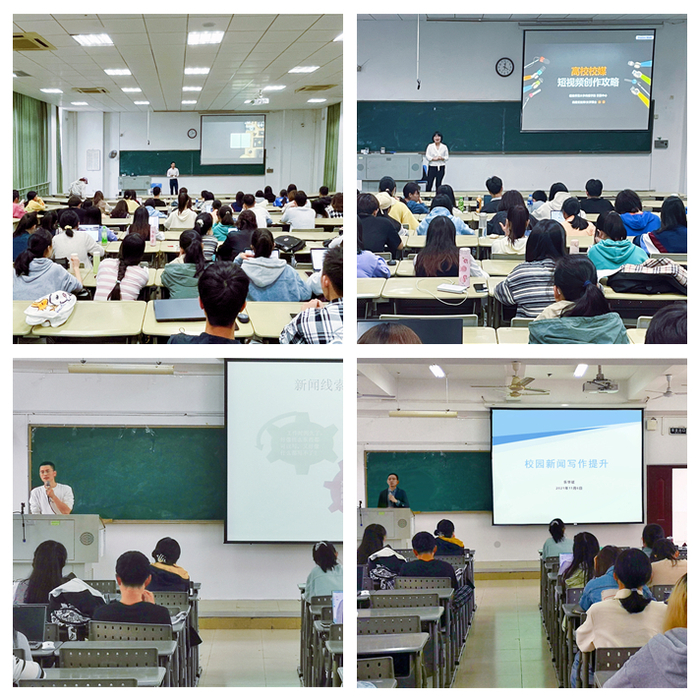 培训邀请了福建日报主任记者程枝文、国家高级摄影师吴文刚、传播学院实践中心高级实验师施蕾、校报编辑部副主任乐华斌围绕新闻选题与采写、新闻摄影、短视频制作等主题与学生记者进行了分享。