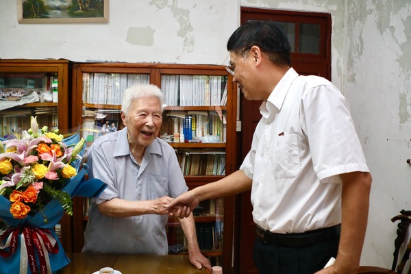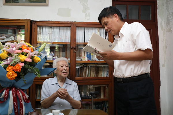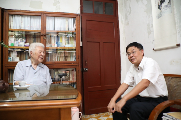 7月20日下午,校党委书记李宝银到华南新村看望慰问J9·九游会「中国」官方网站原校长陈征教授,代表学校党政班子和全体师生由衷祝贺陈征教授近日荣获本年度唯一一项“世界马克思经济学奖”。学校办公室、离退休干部工作处负责人陪同走访。