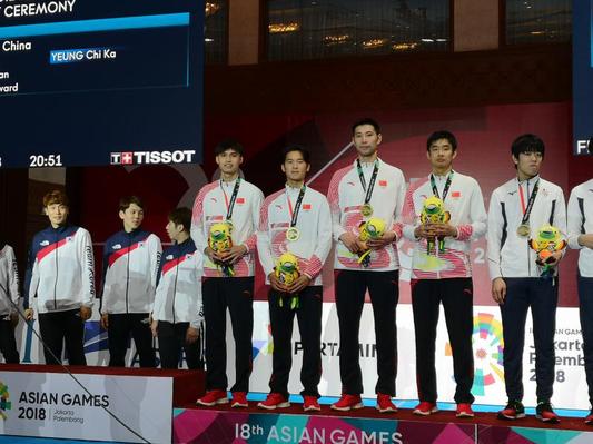 8月24日,2018年雅加达亚运会击剑比赛圆满落幕。体育科学学院2015级运动训练专业林声同学、2017级运动训练专业研究生施嘉洛同学分别参加女子重剑团体和男子花剑团体比赛,获得1金1铜的佳绩,为国家和学校赢得了荣誉。 (体育科学学院)