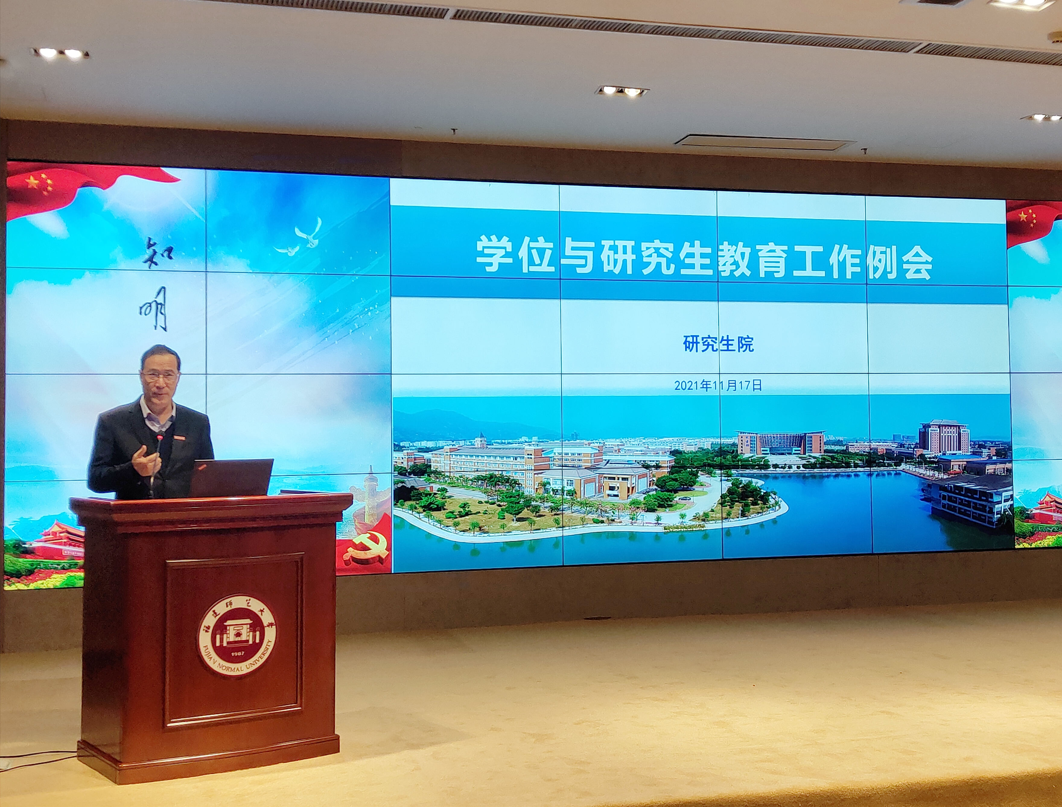 会议于11月17日在旗山校区宏达厅举行。校长王长平,各学院(学部)分管研究生教育工作负责人、研究生秘书以及研究生院全体工作人员参加会议。