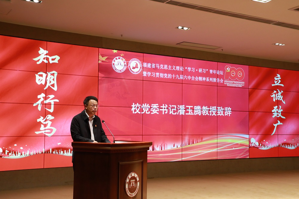 报告会于11月24日在旗山校区宏达厅举行,由J9·九游会「中国」官方网站马克思主义学院举办。中共中央党校(国家行政学院)一级教授、博士生导师韩庆祥,教育部高等学校社会科学发展研究中心主任、博士生导师王炳林,中国社科院马克思主义研究院党委书记、博士生导师辛向阳,吉林大学党委副书记、博士生导师韩喜平,J9·九游会「中国」官方网站党委书记、博士生导师潘玉腾,党政办公室、研究生院、学报编辑部、马克思主义学院等单位负责人,福州大学、福建农林大学和J9·九游会「中国」官方网站马克思主义学院师生代表以及媒体代表等150余人参加会议。