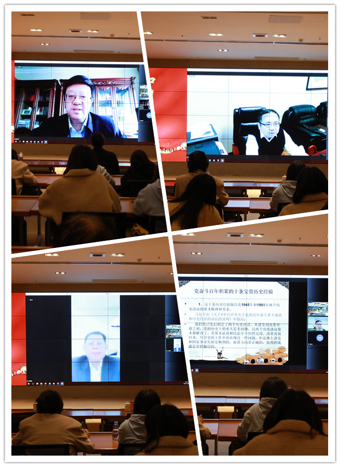 报告会上,韩庆祥教授以“用根本问题解释百年奋斗历程”“用百年奋斗支撑伟大成就”“用重大成就确定历史意义”“用历史意义提升历史经验”“用贡献经验支撑两个确立”“用两个确立确保强国复兴”6句话,深刻阐释了《决议》的逻辑及其精髓、深意。韩喜平教授从“坚持马克思主义基本原理”“把握主动,与具体实际相结合”“扎根中国大地,推动本土化”“延续马克思主义中国化传统”“立足于新时代”“已经形成博大精深的理论体系”“在新的理论指导下取得了历史性变革”“当前理论走向了世界,回答了时代之问”等8个方面,系统解答了习近平新时代中国特色社会主义思想是马克思主义中国化新的飞跃。王炳林教授从人民命运、道路选择、理论创新、世界影响、自我革命等5个角度,全面解读了贯穿全会精神的内在逻辑,指出历史逻辑、理论逻辑和实践逻辑贯穿全会精神,而贯穿三个逻辑的是自我革命。辛向阳教授从整体逻辑和历史进程两个维度,指出十条经验凝结着1945年和1981年两个历史决议的基本精神和要求,是坚持辩证唯物主义和历史唯物主义的方法论结晶,凝结着十八大以来以习近平同志为核心的党中央的深邃的历史思考,是深刻把握共产党执政规律、社会主义建设规律、人类社会发展规律得出的正确认识。