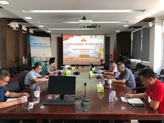 8月18日上午,地理科学学院党委理论学习中心组在仓山校区邵逸夫楼会议室举行学习会,专题学习研讨《习近平谈治国理政》第三卷。学院党委书记李旭主持会议并作重点发言,中心组其他成员结合工作实际作交流发言。