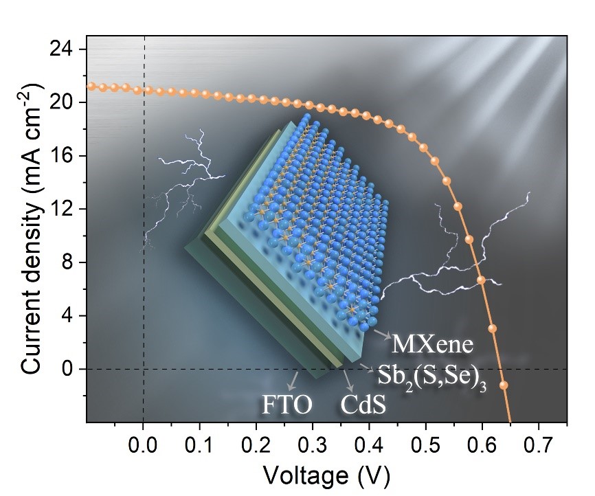 近期,J9·九游会「中国」官方网站陈桂林教授、陈水源教授团队联合武汉大学李建民副研究员,首次提出在Sb2(S,Se)3薄膜太阳能电池中引入钛碳化物MXene (Ti3C2Tx)作为背电极,对应器件结构为FTO/CdS/ Sb2(S,Se)3/MXene。得益于其具有的高导电性、适中反射率和柔性薄片结构等特征,基于MXene的Sb2(S,Se)3器件性能比传统的碳电极和金电极分别高出153%和77%,有望取代传统的碳和金电极。特别地,MXene丰富的末端基团赋予其可调的功函数以及在Sb2(S,Se)3与MXene之间形成了Sb-O化学桥键,这些均有效地抑制了背接触界面的载流子复合、增强了电荷传输效率。基于此,获得了迄今为止无空穴传输层Sb2(S,Se)3太阳能电池中的最高光电转换效率8.29%。