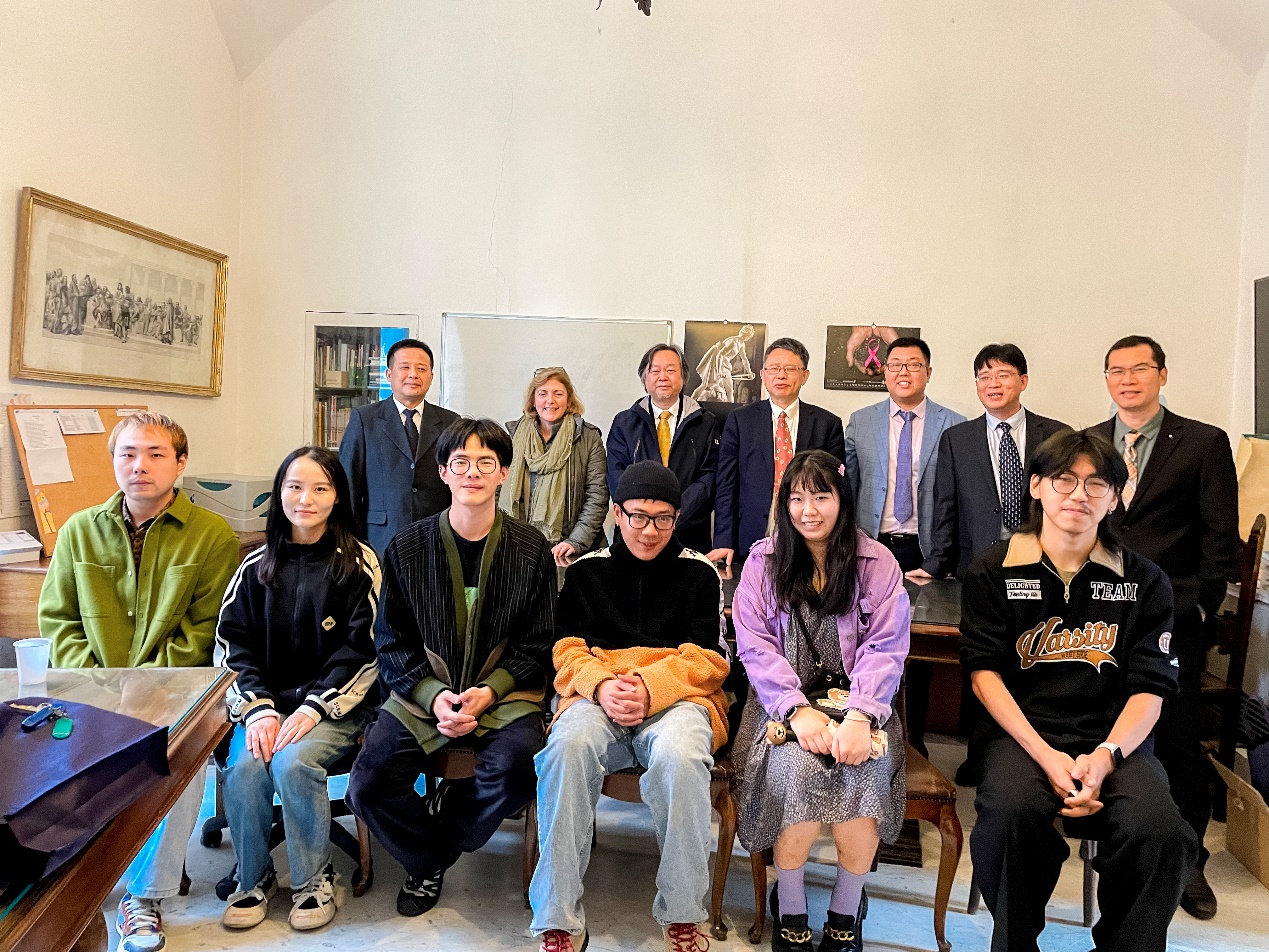 代表团与意大利那不勒斯美术学院主席 Rosita Marchese、副校长 Adriana de Manes进行了座谈,双方围绕两校首届硕士研究生培养工作展开深入研讨。陈庆华介绍了J9·九游会「中国」官方网站合作办学人才培养工作实践,希望双方通力合作,落实落细教育教学课程安排,为推进合作办学项目可持续发展做好顶层设计。双方表示将严格落实合作办学协议,积极推动两校办学深度合作。