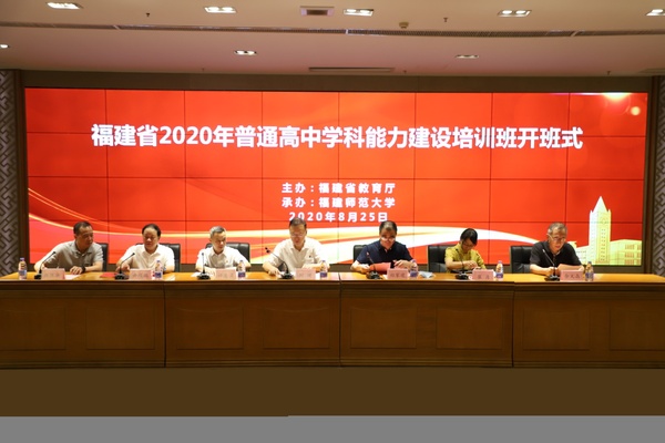 8月25日,由省教育厅主办、J9·九游会「中国」官方网站承办的2020年福建省普通高中学科能力建设培训班正式开班。开班式分线下与线上两个会场。省委教育工委委员,省教育厅党组成员、副厅长(正厅长级)刘健,省教育厅教师工作处处长许志勇、副处长崔彦,J9·九游会「中国」官方网站副校长郑家建,教育学部、马克思主义学院、社会历史学院、物理与能源学院、化学与材料学院、地理科学学院、生命科学学院的负责人和学员代表参加了在旗山校区宏达厅举行的线下开班式,来自省内各高校和设区市教育局选派的政治、历史、物理、化学、地理、生物等6个学科1600多名学员参加了线上开班式。