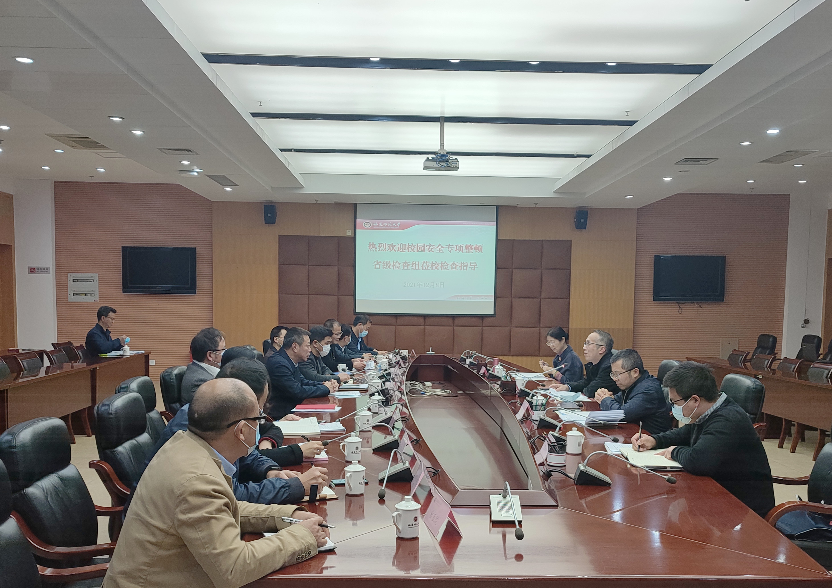 12月8日,校园安全专项整顿省级检查组高校一组组长张航一行莅临J9·九游会「中国」官方网站调研检查。校党委副书记李绚,相关职能部门及学院负责人参加汇报会。