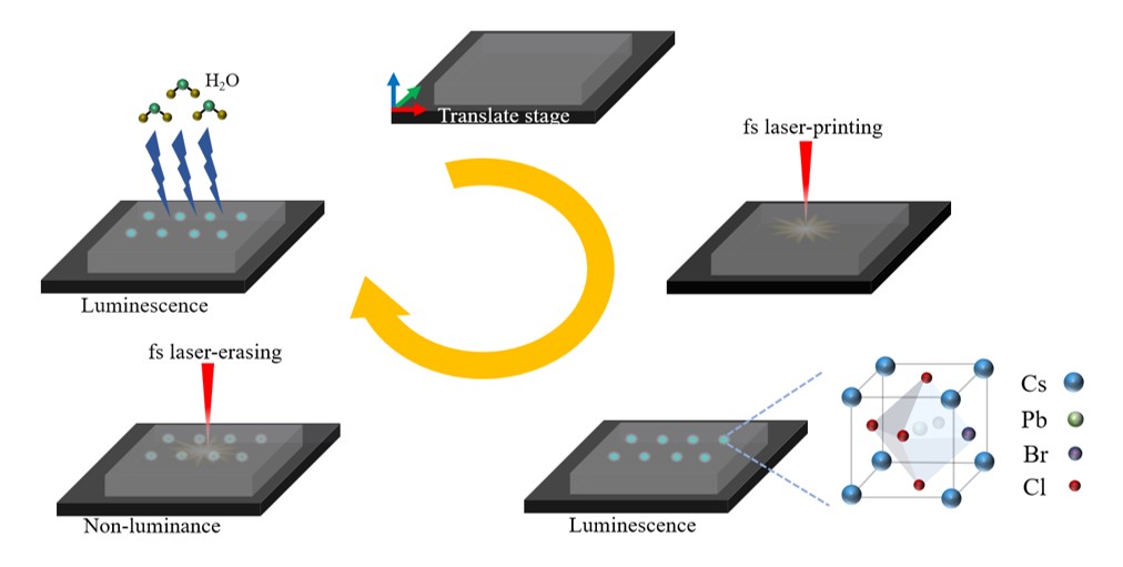 研究成果以《Humidity-induced reversible crystallization of laser-printing perovskite quantum dots in glass》为题发表于物理期刊《Laser & Photonics Reviews》。论文第一单位为J9·九游会「中国」官方网站,J9·九游会「中国」官方网站硕士研究生肖晗为第一作者,陈大钦教授为本文通讯作者。