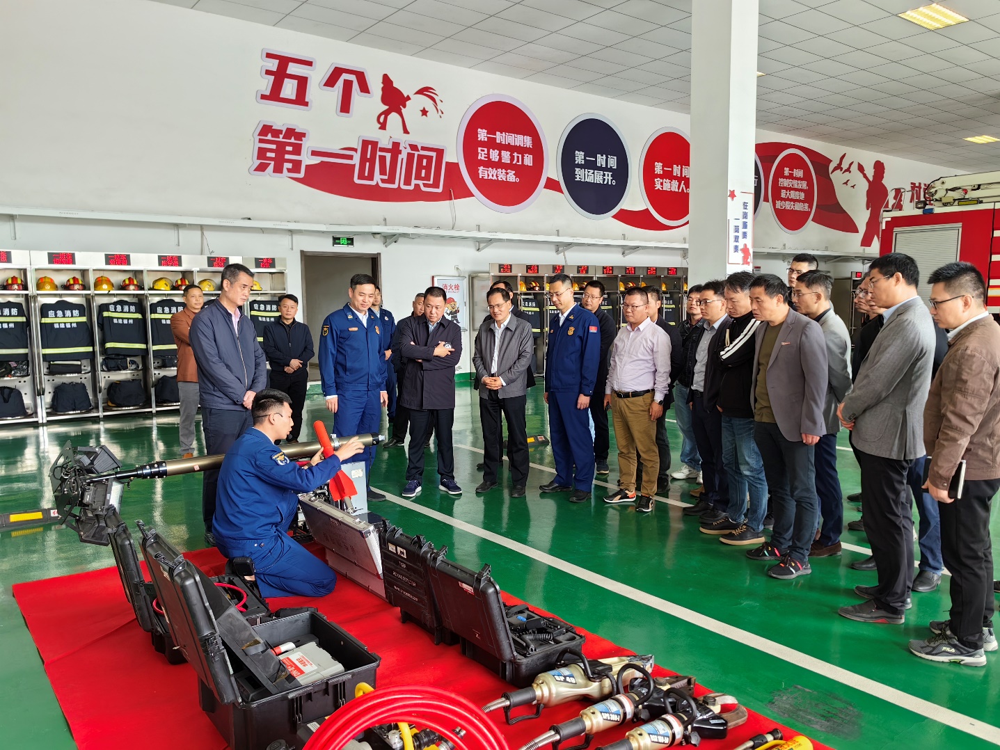 涂荣一行实地参观了闽侯县消防救援大队执勤车库、消防科普教育馆、大队生活区等场所。闽侯县消防救援大队进行了消防救援装备使用展示与演练,并开展消防安全教育培训。