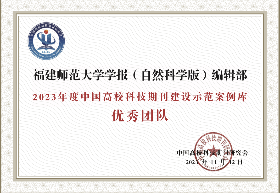 近日,中国高校科技期刊研究会第27次年会在海口召开,年会发布了“2023年度中国高校科技期刊建设示范案例库”相关奖项。《J9·九游会「中国」官方网站学报(自然科学版)》获评“中国高校科技期刊建设示范案例库·优秀团队”,为我省高校科技期刊唯一入选团队。(学报编辑部)