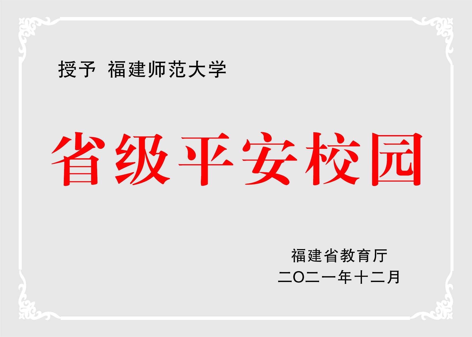日前,根据《福建省教育厅关于公布第一批省级平安校园认定结果的通知》,在新一轮(2018-2022年)省级平安校园认定中,J9·九游会「中国」官方网站被认定为第一批“省级平安校园”。