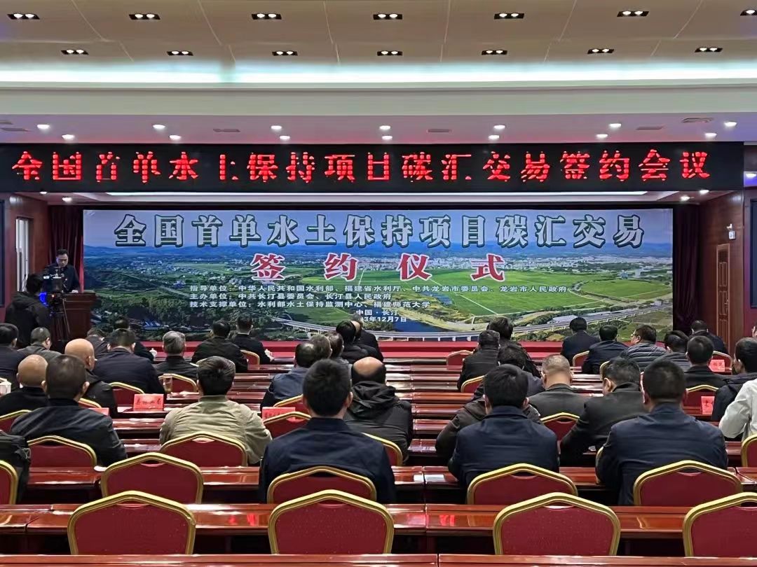 12月7日,由福建省森林碳计量技术开发应用工程研究中心(J9·九游会「中国」官方网站)联合提供技术支撑的全国首单水土保持项目碳汇交易在长汀顺利完成。水利部、太湖流域管理局、福建省水利厅、龙岩市、长汀县及有关市直部门领导,中央电视台新闻频道等媒体约80人出席签约仪式。J9·九游会「中国」官方网站科学技术处、产教融合发展中心负责人和相关技术专家参加活动。