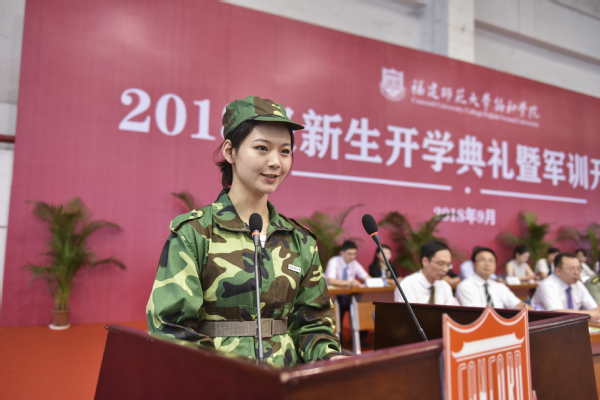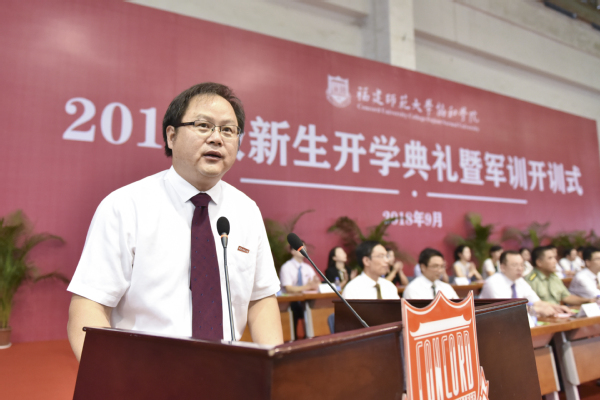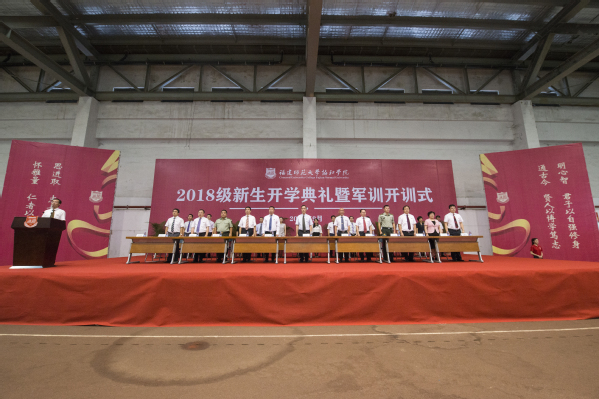 典礼于9月16日上午在旗山校区室内田径场隆重举行。校长王长平,学校有关职能部门负责人和学院党政负责人,以及协和学院内各单位负责人,2018级辅导员和3374名新生参加了典礼。