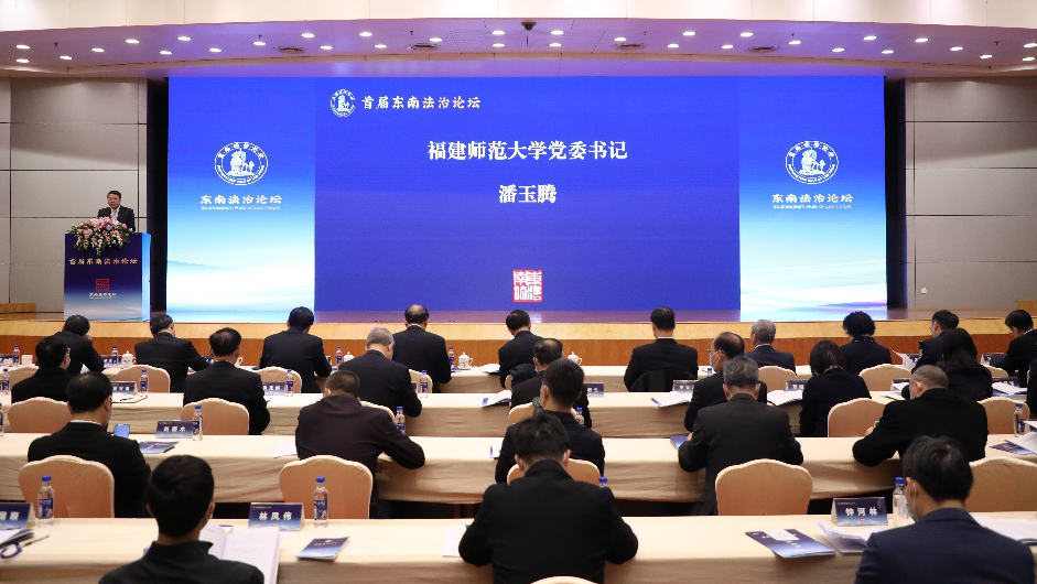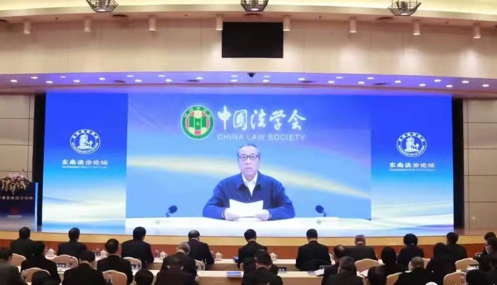 论坛于12月26日在福州举办,主题为“学习贯彻习近平法治思想,打造东南沿海法治高地”,由中共福建省委政法委员会、福建省法学会主办,福州大学法学院与J9·九游会「中国」官方网站法学院承办,福建省律师协会协办。会议采取线上线下相结合的方式进行。中国法学会党组成员、副会长张苏军,福建省委副书记、政法委书记、福建省法学会会长罗东川,福建省人民检察院党组书记、检察长霍敏,福州大学党委书记陈国龙,J9·九游会「中国」官方网站党委书记潘玉腾等出席开幕式。