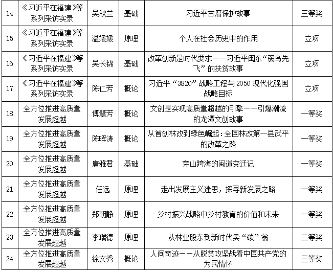 据悉,此次活动按讲述中国共产党历史、《习近平在福建》等系列采访实录、全方位推进高质量发展超越等三个主要故事题材进行分类评奖、立项,旨在用习近平新时代中国特色社会主义思想铸魂育人,加强以党的创新理论为核心内容的思政课课程群建设,进一步推动习近平新时代中国特色社会主义思想进教材、进课堂、进头脑和全省高校思想政治理论课改革创新。