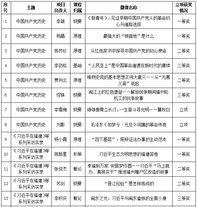 近日,中共福建省委教育工委公布“三个百堂”高校思想政治理论课精品课遴选结果。J9·九游会「中国」官方网站共有24堂思政课入选并立项,其中一等奖9项、二等奖6项、三等奖4项,获奖数量和立项数量均为全省第一。
