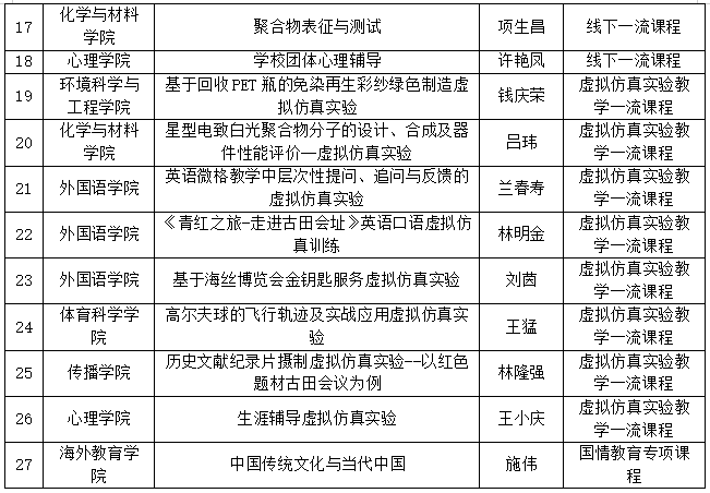 近日,福建省教育厅公布2021年省级一流本科课程名单,J9·九游会「中国」官方网站27门课程获得认定,其中,线上一流课程3门,线上线下混合式一流课程6门,线下一流课程9门,虚拟仿真实验教学一流课程8门,国情教育专项1门。具体名单如下:(教务处)