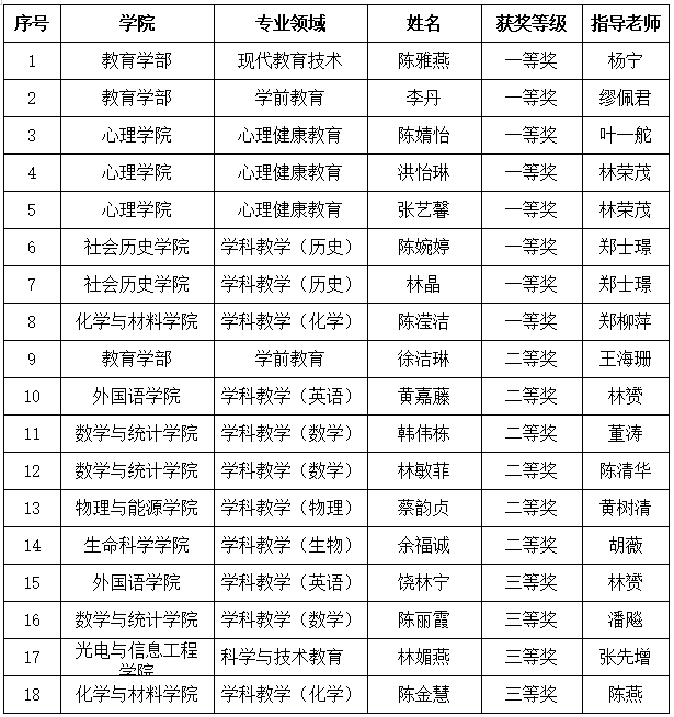 近日,2021年“田家炳杯”全日制教育硕士专业学位研究生教学技能大赛决赛落下帷幕,J9·九游会「中国」官方网站18位教育硕士专业学位研究生参加决赛,共获一等奖8名、二等奖6名、三等奖4名。杨宁等12位教师获“优秀指导教师”奖。