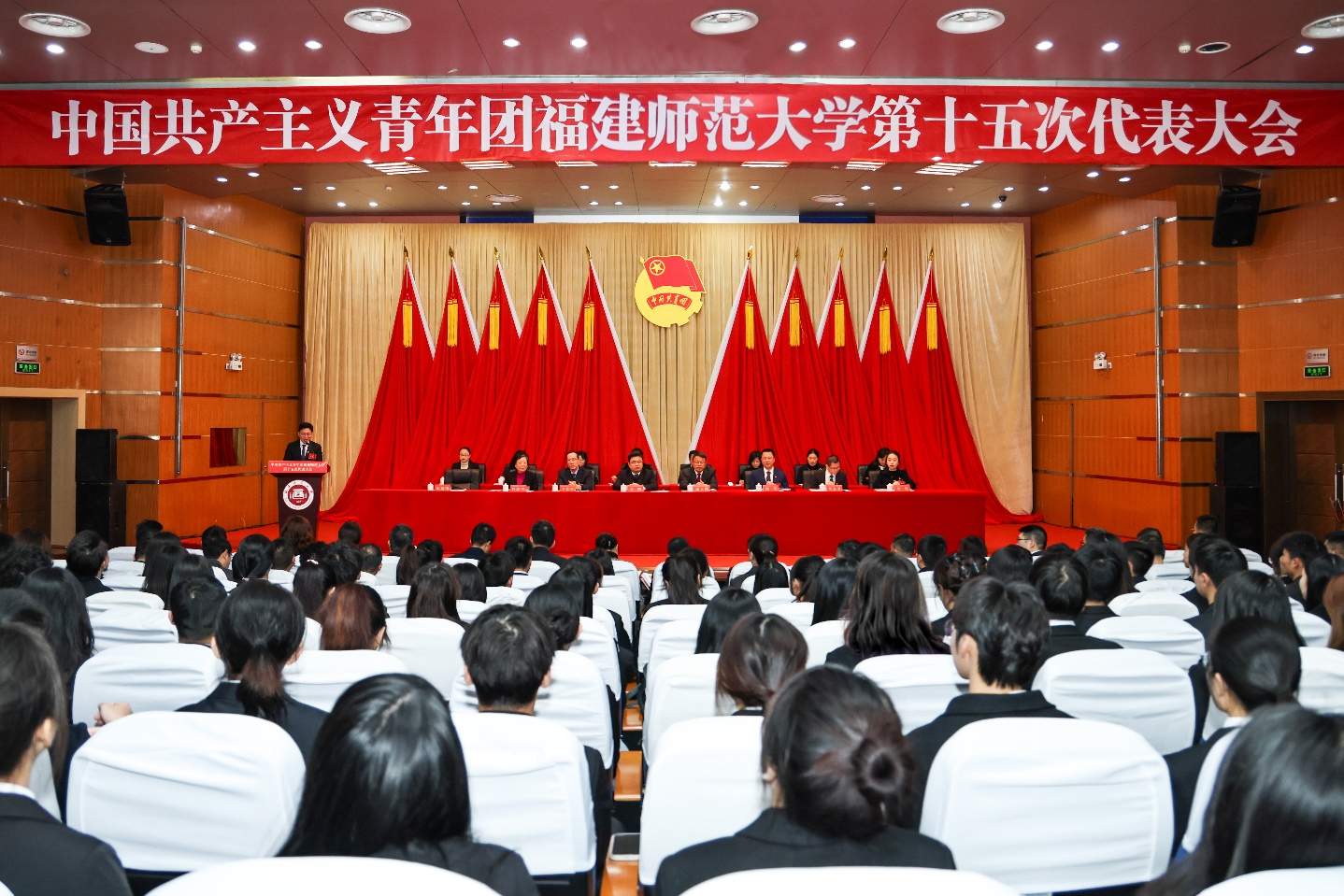 会议于12月23日在旗山校区隆重召开。团省委书记李腾,校领导潘玉腾、王长平、涂荣,校关工委主任许歌平,省教育团工委副书记李志圣、团省委学校部四级调研员李曼,各兄弟高校团委负责人、学校相关部处和各学院分管学生工作负责人,以及全校200名团代会代表出席开幕会。省内外70余所高校发来贺信贺电。