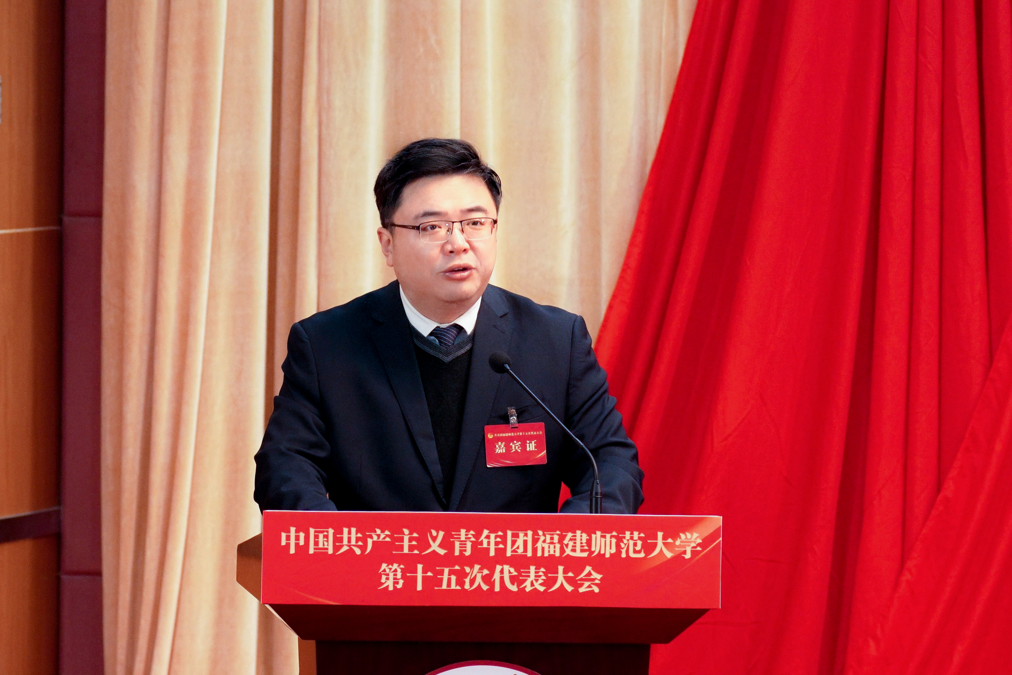 李腾代表共青团福建省委向大会的召开表示热烈的祝贺,他充分肯定了学校共青团自第十四次代表大会以来,在强化思想引领、服务青年成长、活跃校园文化、加强自身建设、承接全团重大任务等方面取得的优异成绩,并提出四点希望:一是坚持为党育人,引导团员青年坚定不移听党话、跟党走;二是自觉担当尽责,引领广大青年学子建功立业;三是当好桥梁纽带,竭诚服务青年成长发展;四是勇于自我革命,深化团学改革、全面从严治团。