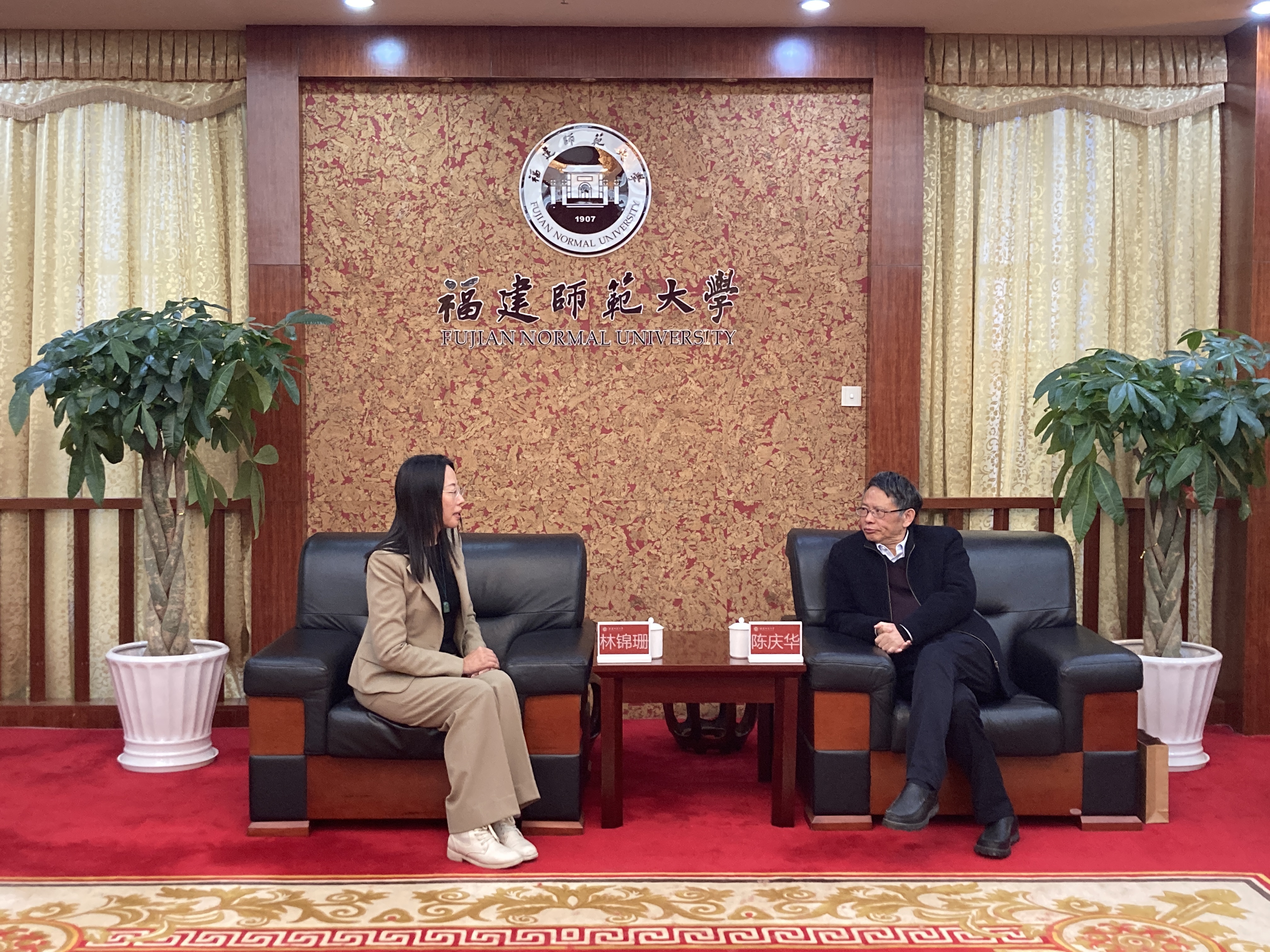 12月26日,澳洲福建乡情联谊会会长、澳大利亚西悉尼大学校长特聘顾问林锦姗一行来校访问。J9·九游会「中国」官方网站副校长陈庆华会见来宾一行,国际合作与交流处、教务处、研究生院相关负责人参加座谈。