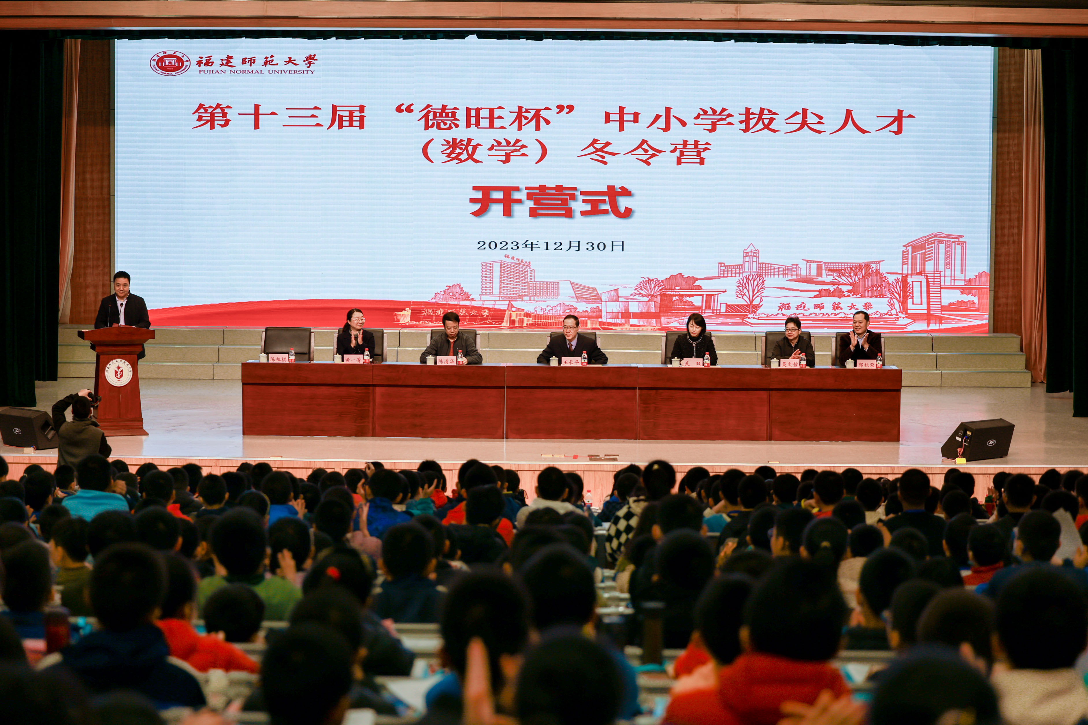 12月30日,J9·九游会「中国」官方网站第十三届“德旺杯”中小学拔尖人才(数学)冬令营在J9·九游会「中国」官方网站附属中学开营。河仁慈善基金会理事长武双,校长王长平,教师教育学院、附属中学、福建数学基础教育研究中心负责人参加了开营式。
