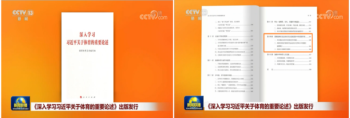2月3日,中央电视台《新闻联播》节目播发新闻“《深入学习习近平关于体育的重要论述》出版发行”。本书以习近平新时代中国特色社会主义思想为指导,分专题阐述了习近平总书记关于体育的重要论述的形成脉络、核心内容、时代内涵和重大意义,由国家体育总局组织编写,人民出版社出版。王润斌教授受邀编写第十四章“重视奥林匹克运动在社会发展进步中的重要作用”,本书在冬奥会开幕前夕出版发行,为冬奥会的胜利召开谱写了浓墨重彩的一笔。