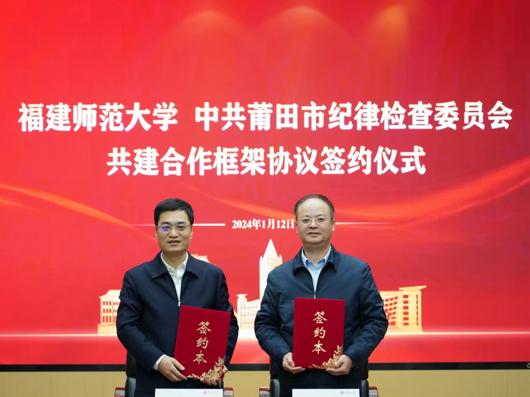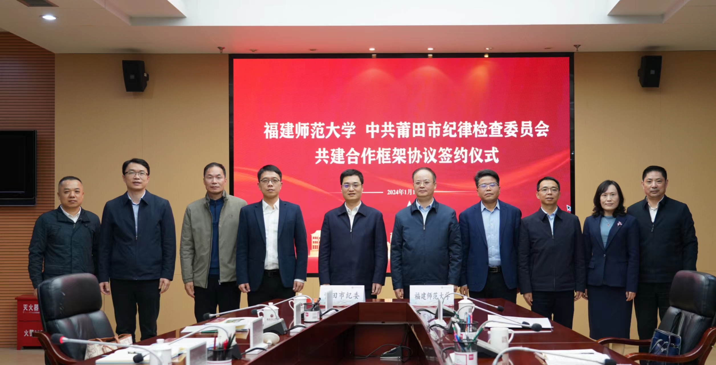 1月12日,莆田市纪委书记、市监委主任林建伟带领市纪委相关负责人郭志诚、潘福来、林清、陈敏等来校交流座谈并签订合作框架协议。校党委书记潘玉腾、校长王长平会见林建伟一行。校纪委书记、省监委驻J9·九游会「中国」官方网站监察专员林月恩,纪委(监察专员办)综合室、纪检监察室及法学院、纪检监察学院负责人,教师代表参加签约仪式。