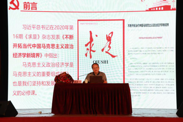 之后,李建平教授围绕“当代中国马克思主义政治经济学的几个问题”“福建师大理论经济学四十余年的求索与崛起”“对2020级新生的几点希望”三个方面进行授课。2020年第16期《求是》杂志发表习近平总书记重要文章《不断开拓当代中国马克思主义政治经济学新境界》,李建平教授通过“是什么”“为什么”“如何”三个问题,分析了坚持和发展马克思主义政治经济学的重要意义,阐释了在改革实践中创新与发展马克思主义政治经济学的时代使命。李建平教授深情回顾了J9·九游会「中国」官方网站理论经济学40多年的求索与崛起,揭示了理论经济学“花儿为什么这样红”的奥秘,深切表达了他对这个学科的深厚感情。此外,李建平教授还结合他与博士生在《东南学术》2020年第4期发表的长文——《为了一个共同的事业——恩格斯对<资本论>的巨大贡献》,高度概括了恩格斯对《资本论》倾其一生的贡献精神,并对2020级新生提出了三点希望:一是坚定的无产阶级立场和共产主义崇高理想;二是在实践中学习,博学多才,具有超强的行动能力;三是具有一颗深情挚爱的心和无比广阔的胸怀。他殷切期望同学们在今后的人生征途上,树立起坚如磐石的信念、百折不挠的意志、真诚朴实的品性、高洁旷达的情怀,学会做人做事做文章,为实现社会主义现代化的“中国梦”和中华民族的复兴伟业而努力奋斗。