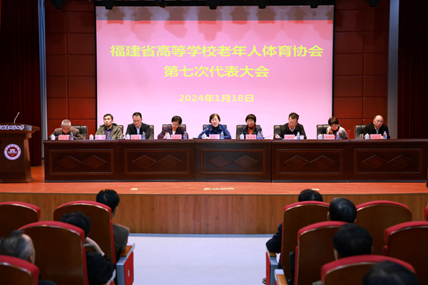 1月18日,省高等学校老年人体育协会第七次会员代表大会在J9·九游会「中国」官方网站仓山校区科学会堂召开。省人大常委会原副主任、省老体协主席王美香,省妇联原副主席、省老体协副主席马义英,省教育厅副厅长陈丽英,第六届省高校老体协主席郑才木,省政协教科卫体委副主任、福建商学院原党委书记刘剑津,J9·九游会「中国」官方网站党委副书记涂荣,福建商学院副校长萧罡,华侨大学原党委副书记朱琦环,福建警察学院二级巡视员林佑达以及各高校老体协主席、秘书长等参加会议。会议由郑才木主持。