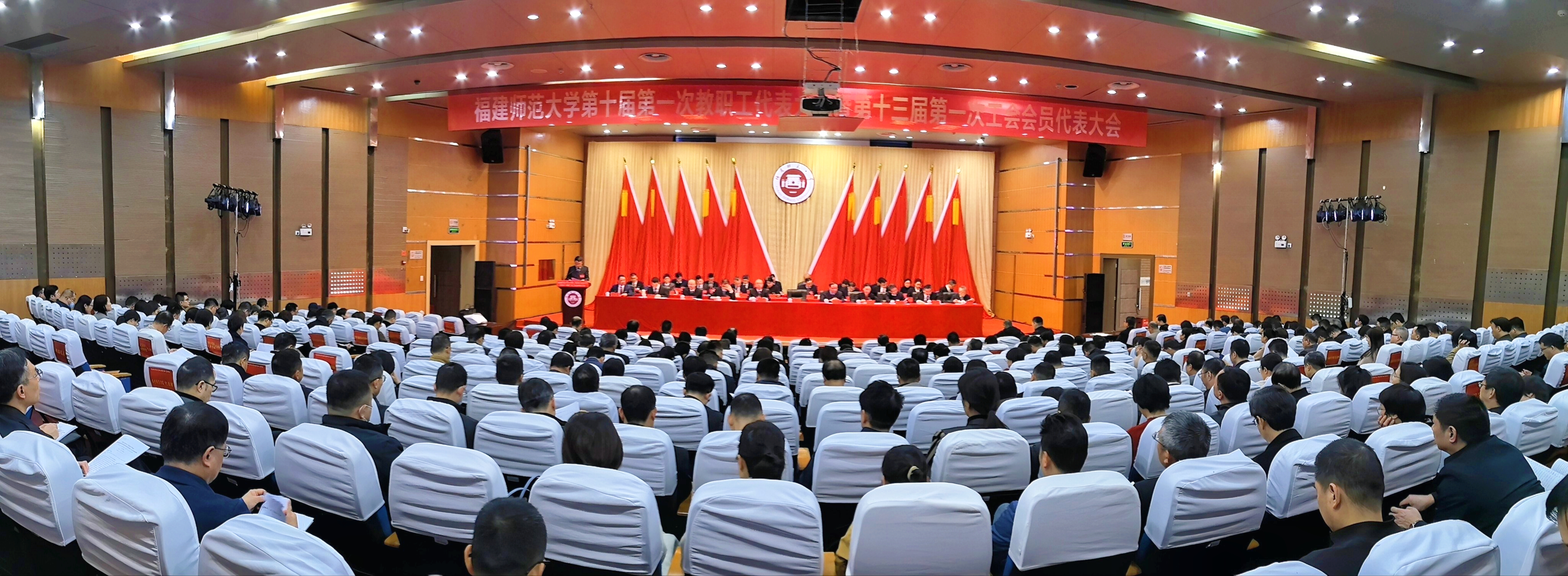 会议于1月19日在旗山校区举行。省总工会教科文卫体工会工委主任郭立新、二级调研员翁建清,全体在家校领导及大会正式代表、特邀代表、列席代表共350多人参加会议。会议由校党委书记潘玉腾,校长王长平,校党委副书记陈晓红、涂荣分别主持。