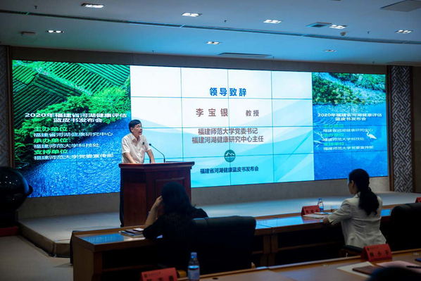 会上,校党委书记、福建省河湖健康研究中心主任李宝银代表学校欢迎各位领导、专家的到来,表示福建省河湖健康研究中心于去年11月再次启动省域河流健康蓝皮书编制规划工作,对全省流域面积大于200平方公里的179条河流和21座大型水库开展健康评估,强调希望通过蓝皮书的发布,推动社会各界更加关心水资源和水环境,更加重视水生态和水安全,共同加快构建现代水治理体系。