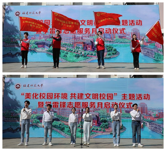 3月9日,J9·九游会「中国」官方网站在旗山校区共青团广场举行“美化校园环境 共建文明校园”主题活动暨学雷锋志愿服务月启动仪式。校领导潘玉腾、王长平、涂荣,相关职能部门负责人,各学院分管学生工作负责人及师生代表共200多人参加。启动仪式由副校长涂荣主持。