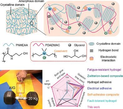 柔性电子具有改变个性化医疗的潜力,特别是在便携微型设备、生物电植入物和多像素传感阵列领域。可穿戴和便携的身体适应性传感平台由于其与皮肤良好的接触能力和精确记录数据的能力而备受关注。然而,传统的商业胶粘剂存在的毒性风险与新型的绿色合成粘合剂的不可伸缩性限制了其在拉伸皮肤上的适应性。因此,对于柔性电子器件在人体皮肤上的长期附着来说,开发具有高黏附性和机械延展性的新型胶粘剂仍然是一个具有挑战性的任务。