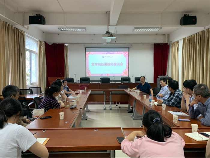 近日,文学院在邵逸夫楼二层多功能厅召开2020年新进教师座谈会,院领导、新进教师、学科带头人和院办公室工作人员参加会议。