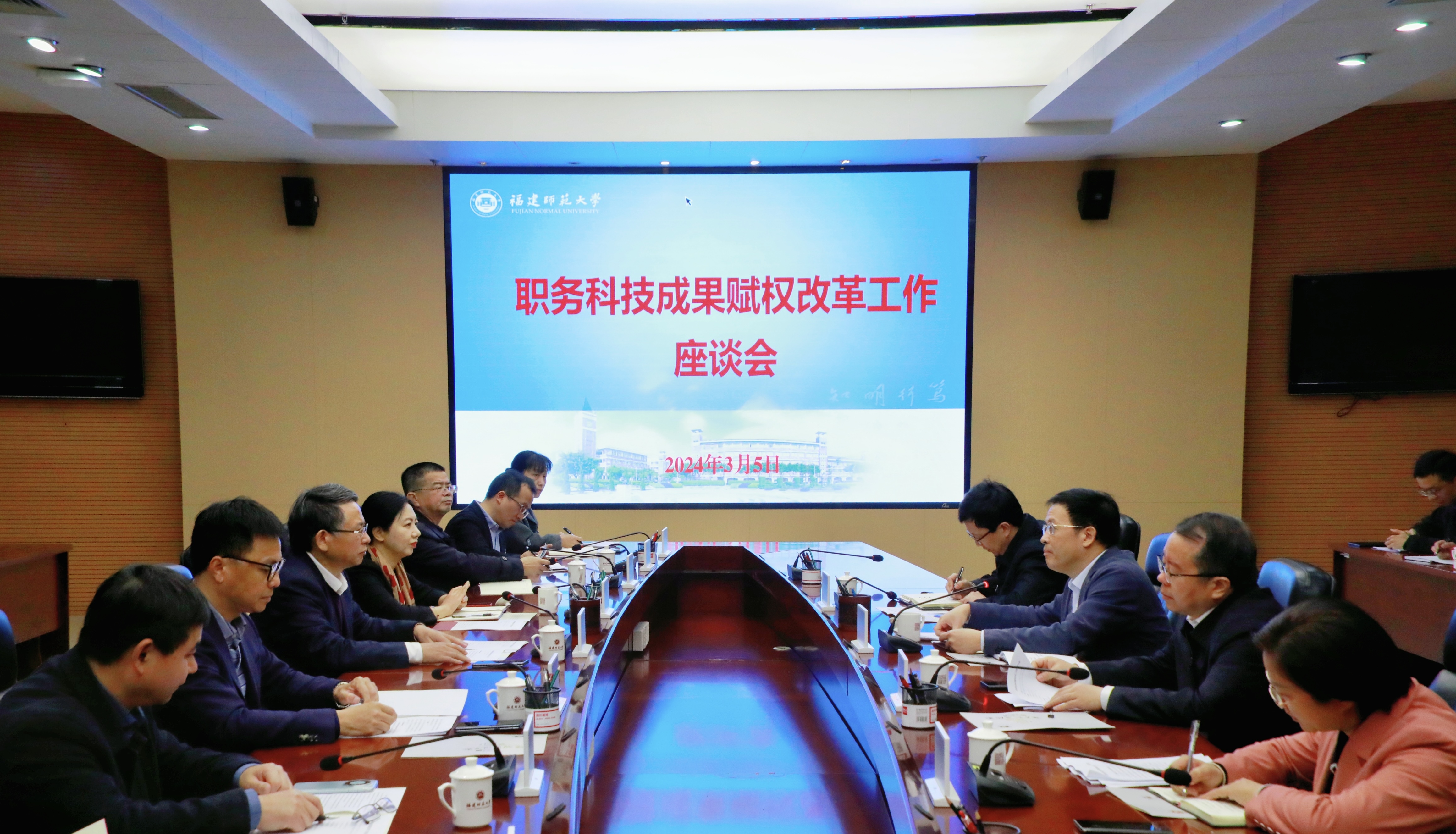 会上,陈庆华简要介绍了学校事业发展以及职务科技成果赋权改革工作情况。产教融合发展中心负责人汇报了学校科技成果转化综合试点工作取得的成效、存在的问题以及下阶段的工作计划。相关职能部门和科研团队代表对完善科技成果转化尽职免责机制提出了意见建议。