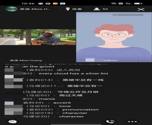 马克思主义学院李逢铃老师线上教学讲课 大学英语课QQ直播间交互教学