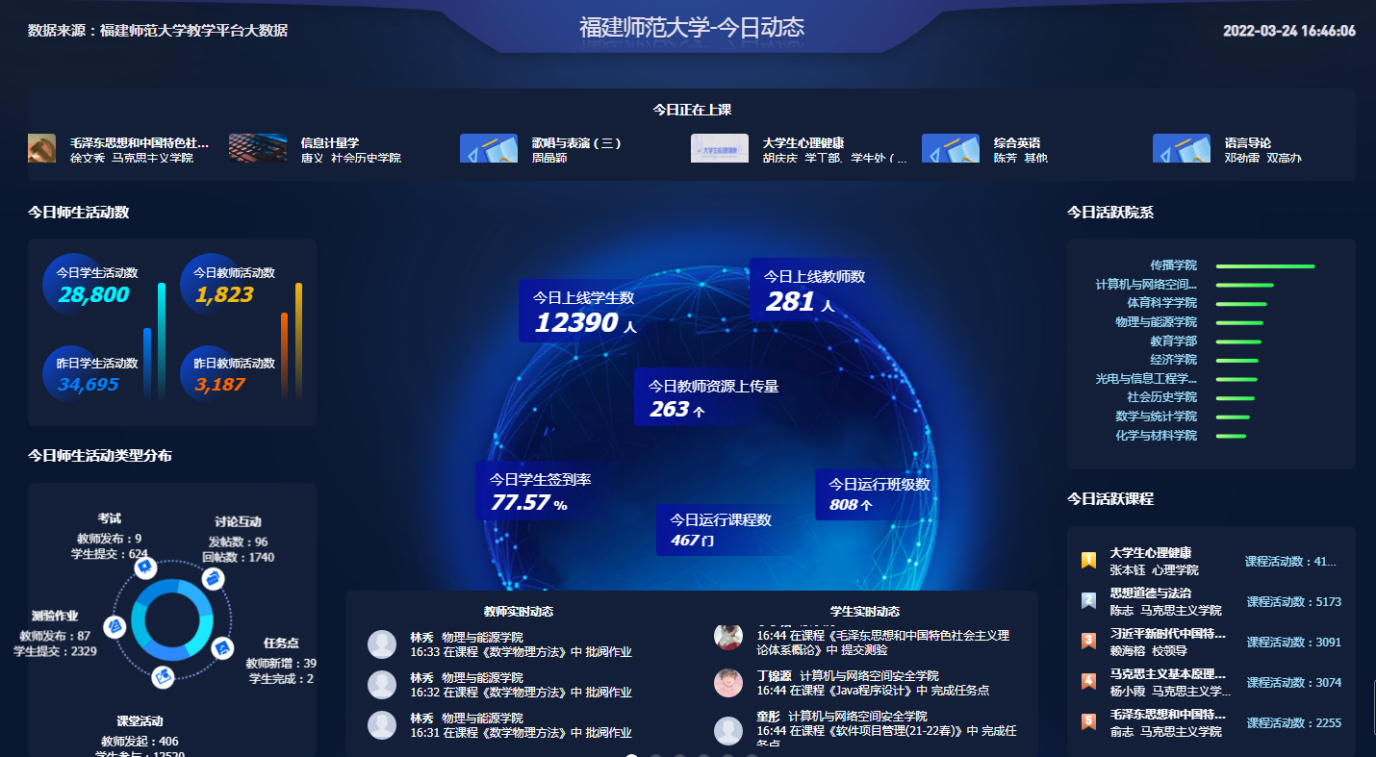 ——实践课程有所创新。各学院结合课程特点积极探索,创新开展了实验教学活动。例如,师范生技能实践课程安排学生课前在微格教室自主录课,课上由任课教师线上点评,顺利实现实践课程的线上线下融合;生命科学学院《动物学实验》由老师对实物标本进行拍照录像并在课堂上进行讲解,有效增强了学生仿真体验;体育科学学院《体育舞蹈》通过在线直播的方式引导师生运动抗疫,当日吸引7893人次观看。