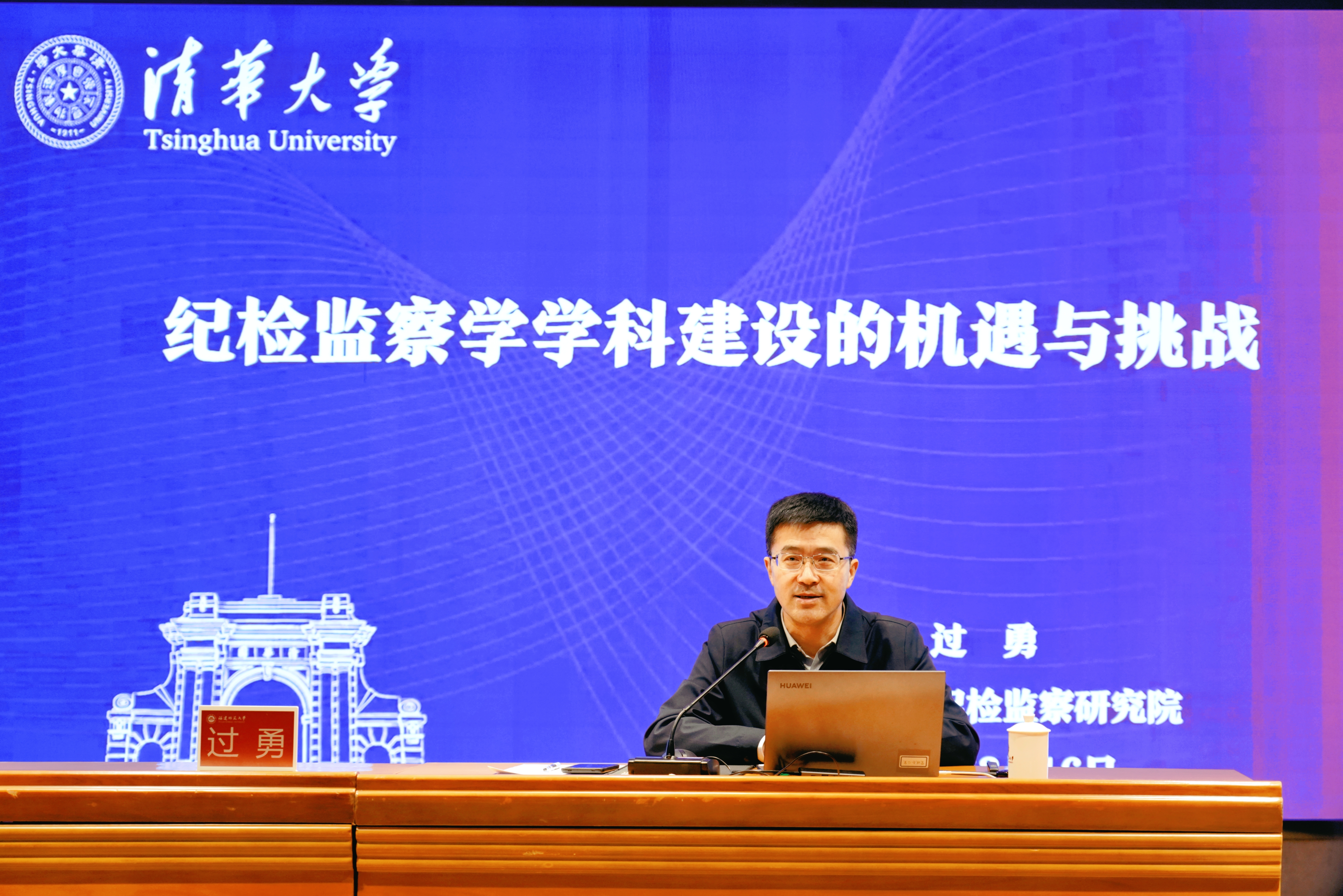报告会上,过勇教授围绕纪检监察学科总体构划,详细介绍了学科前期发展、正式设立和发展机遇等情况,深入阐述了纪检监察学科体系、人才培养体系构建的重要原则,并从“宣传阐释习近平总书记关于党的自我革命的重要思想”“纪检监察学科知识体系建构”“腐败的规律与趋势”“腐败形势评价”“国家监察体制改革”“反腐败国际合作”等多重维度,介绍了纪检监察学科重点研究视域。过勇强调,新时代纪检监察学学科建设要深入学习贯彻习近平总书记关于党的自我革命的重要思想,加强党对纪检监察学科建设的领导,构建具有中国特色和国际视野的纪检监察学科知识体系,加快完善具有纪检监察学学科特色的人才培养体系,合力打造高质量的学术共同体,为纵深推进新征程纪检监察工作高质量发展,健全党和国家监督体系提供有力的人才保证、智力支持与理论支撑。