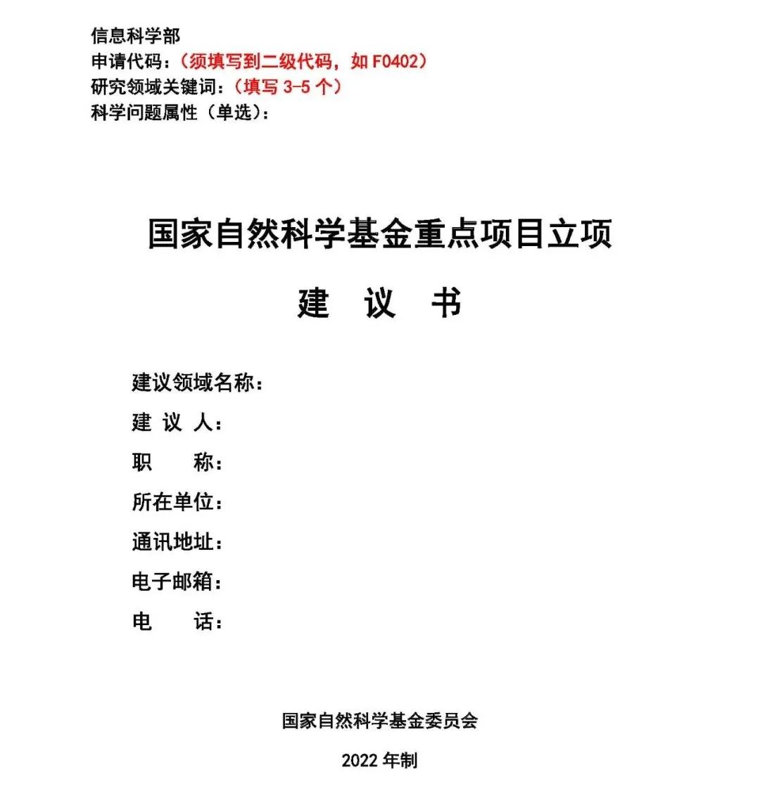 提示:重点领域建议书将匿名送审,建议书正文请勿出现建议人及其所在单位相关信息,否则视为无效建议。
