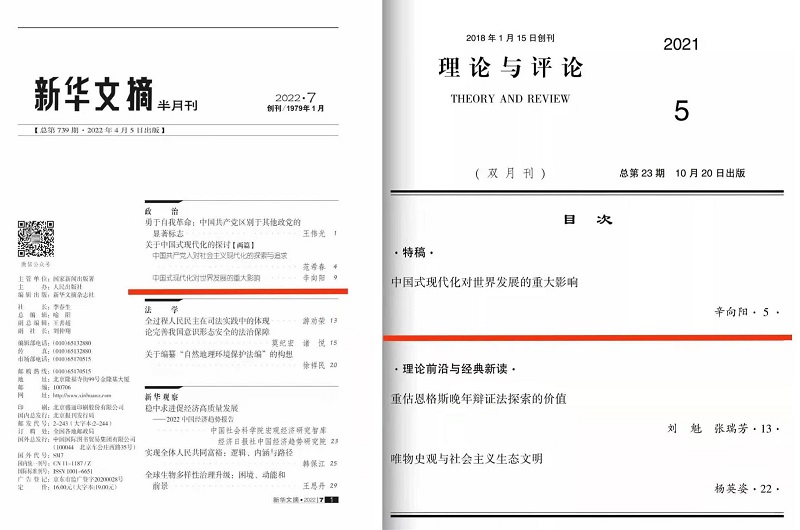 近日,《新华文摘》2022年第7期全文转载了《理论与评论》2021年第5期辛向阳研究员的学术论文《中国式现代化对世界发展的重大影响》,这是该刊物2021年度获《新华文摘》全文转载的第2篇刊文。