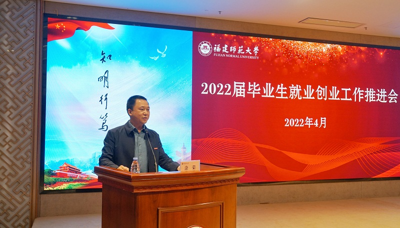 涂荣就当前毕业生就业创业工作面临的形势和任务作了深入分析。他指出,2022届全国高校毕业生人数再创新高,毕业生求职就业深受经济下行压力和疫情等多重因素影响,面临特别严峻复杂的形势。他强调,相关职能部门、各学院要进一步提高政治站位,坚决扛起政治责任,科学统筹好疫情防控和就业创业工作;要进一步强化组织领导,深入实施就业工作“一把手”工程,学院党政领导要坚持靠前指挥、亲自谋划部署,完善组织推动、全员联动、制度引动的推进机制;要进一步细化工作举措,全面开展“校院领导访企拓岗促就业”专项行动,建立就业供需信息有效联通机制,竭尽全力为毕业生就业创业创造机会和岗位;要进一步优化指导服务,持续举办线上线下校园招聘活动,不断完善“一站式”服务体系建设,更加精准做好就业指导服务和帮扶工作;要进一步深化“三创”品牌建设,持续做好“互联网+”“挑战杯”等创新创业大赛组织工作,不断提升学生创新创业能力,努力实现“三创育人”的价值目标。