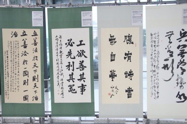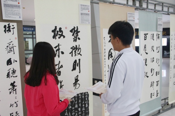 11月20日-11月23日,由团中央学校部主办、校团委承办的“习语金句▪百校千言”——当代书法名家进高校翰墨巡展启动仪式在旗山校区又玄图书馆举行。本次活动共邀请了当代中国20余位著名书法家,以不同的字体撰写习近平总书记用典金句100余幅,包含敬民、为政、修身、任贤、天下、法治等内容,并介绍了各种字体的特点和历史渊源,以及习近平总书记用典金句的出处和相关背景知识。