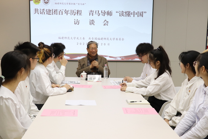 4月20日下午,“共话建团百年历程青马导师‘读懂中国’”访谈会在旗山校区小葵馆举行。四位青马导师、校关工委陈汤䘵、张志忠、王震声、程利国,校第21期青马班学员代表参加了活动。