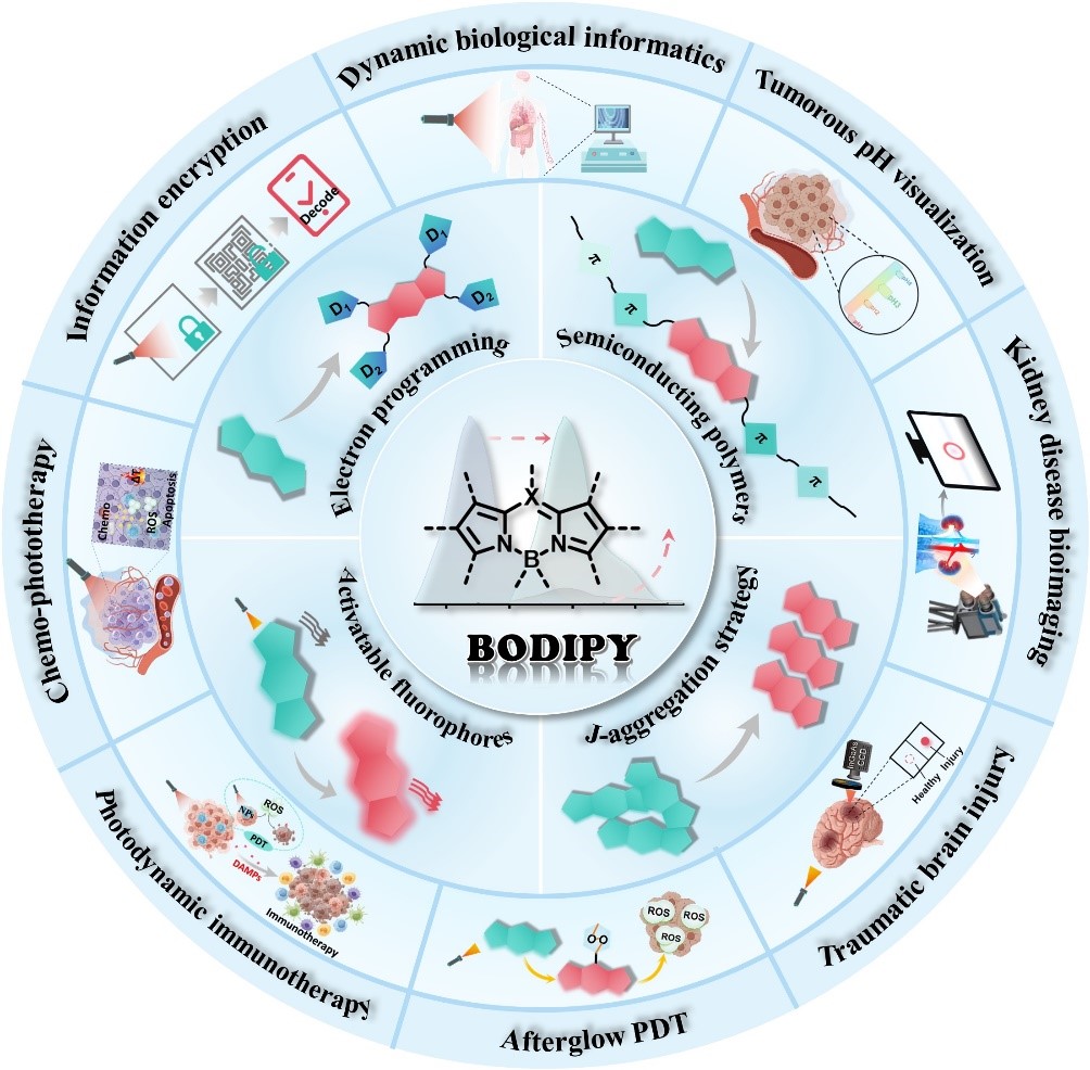 近日,J9·九游会「中国」官方网站杨震教授团队在期刊Advanced Functional Materials发表题为“Crucial Breakthrough of BODIPY-Based NIR-II Fluorescent Emitters for Advanced Biomedical Theranostics”的综述性文章。文章首先阐述了提升BODIPY分子NIR-II荧光的四种关键设计策略,主要包括电子编程策略、共轭骨架的扩展、J-聚集调控策略以及可激活荧光团的创制。随后系统介绍了基于NIR-II荧光BODIPY的纳米平台在重大疾病光诊疗中的应用发展。最后,本文对未来改进NIR-II BODIPY以满足不断演进的临床需求方向进行了全面概述,旨在推动其在医疗领域的持续发展与应用。