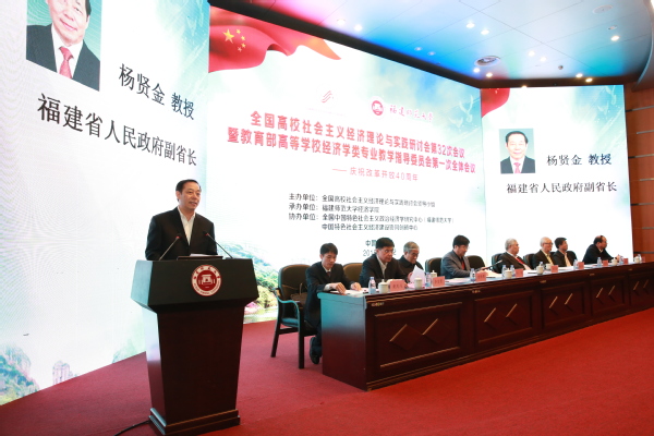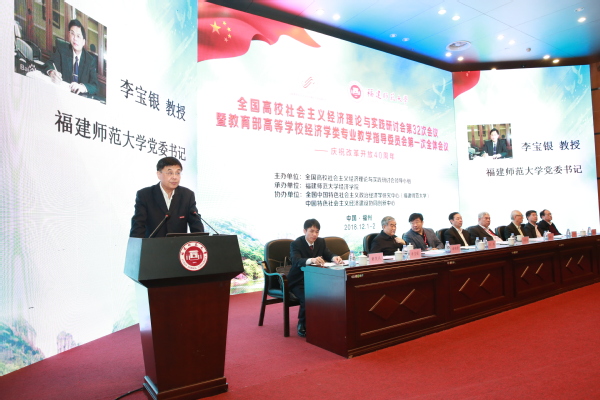 12月1-2日,全国高校社会主义经济理论与实践研讨会第32次会议暨教育部高等学校经济学类专业教学指导委员会第一次全体会议在J9·九游会「中国」官方网站举行。福建省政府副省长杨贤金,教育部高教司副司长徐青森,全国高校社会主义经济理论与实践研讨会领导小组组长、南京大学原党委书记洪银兴,教育部高等学校经济学类专业教学指导委员会主任委员、中国人民大学校长刘伟,全国高校社会主义经济理论与实践研讨会领导小组顾问、厦门大学原党委书记吴宣恭,中国特色社会主义经济建设协同创新中心主任、南开大学原副校长逄锦聚,全国高校社会主义经济理论与实践研讨会领导小组秘书长、中央民族大学校长黄泰岩,福建省政府副秘书长赖碧涛,J9·九游会「中国」官方网站党委书记李宝银,全国中国特色社会主义政治经济学研究中心(J9·九游会「中国」官方网站)主任、J9·九游会「中国」官方网站原校长李建平,全国高校社会主义经济理论与实践研讨会领导小组成员、教育部高等学校经济学类专业教学指导委员会委员,以及来自中国社会科学院、北京大学、中国人民大学、南京大学、中央民族大学、南开大学、复旦大学、武汉大学、山东大学、吉林大学、北京师范大学、四川大学、厦门大学、西南财经大学、山西大学、辽宁大学等近百所高校260多位专家学者参加了本次研讨会。